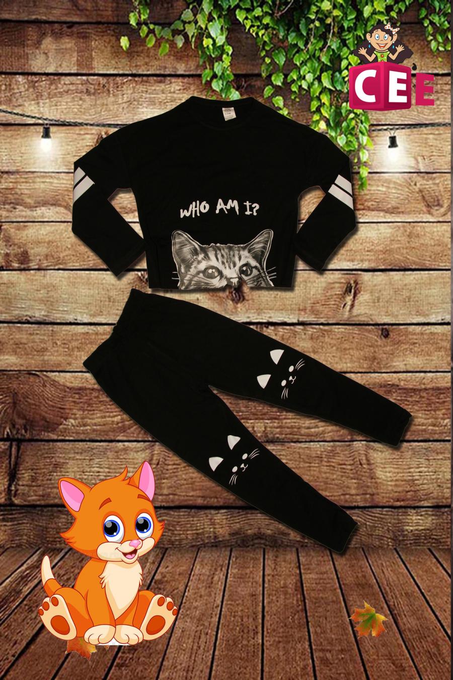 KIZ ÇOCUK KEDİLİ İNCE MEVSİMLİ KISA CROP TAKIM